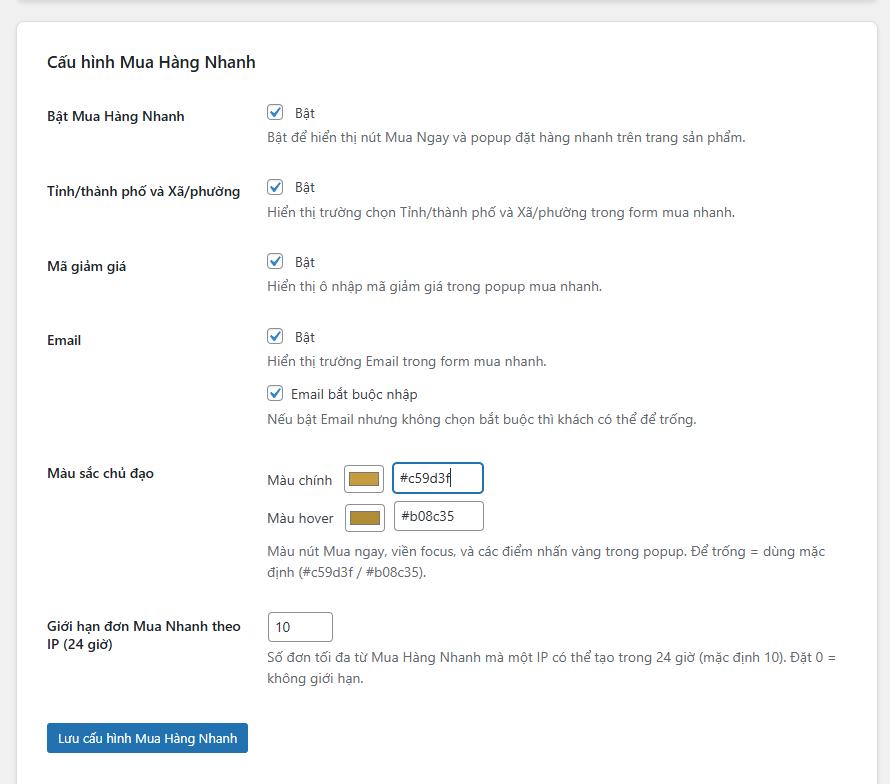 - Tính năng giới hạn số lượng đơn hàng theo địa chỉ IP để chống spam.