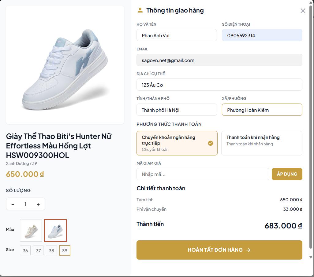 Bên cạnh đó, trải nghiệm người dùng được cải thiện rõ rệt. Nút mua ngay hiển thị rõ ràng, thao tác đơn giản, không gây rối cho người mua. Điều này giúp website trở nên chuyên nghiệp hơn và tạo cảm giác tin cậy trong quá trình đặt hàng.