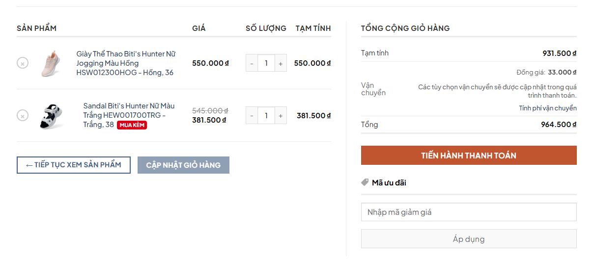 Badge “Mua kèm”: Xuất hiện trong giỏ hàng (Hình 3) giúp khách hàng dễ dàng nhận biết các sản phẩm đang được hưởng ưu đãi đặc biệt.